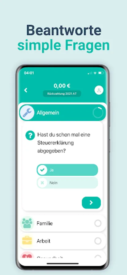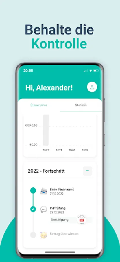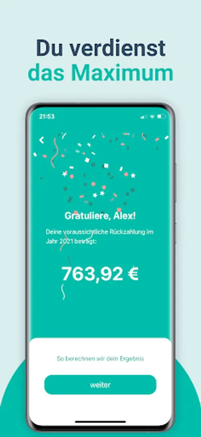 Bei uns ist alles einfach. Taxefy leitet dich spielerisch durch alle relevanten Fragen, rechnet dir automatisch deine Rückzahlung aus und übernimmt die gesamte Abwicklung. Tippe dich gemütlich durch, in dem du Fragen beantwortest, wie in einem Gespräch mit einem Freund.