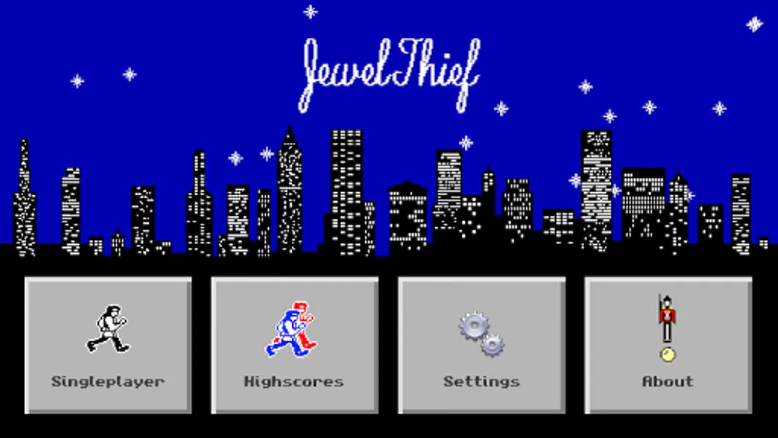 'Jewel Thief' was a game made by Paul Ligeski from ServantWare in 1991. This app is a re-implementation for modern hardware using the original sprites and backgrounds.
