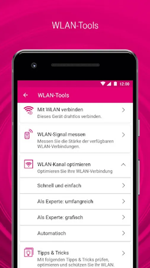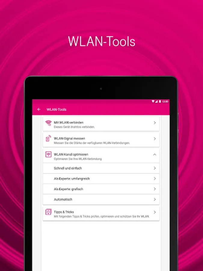 Our WLAN tools make your everyday life easier: find locations with particularly good WLAN reception using the WLAN signal measurement or optimize the WLAN channel for faster surfing. In addition, tips and tricks offer valuable help in everyday life, and it is also easy to establish a WLAN connection.