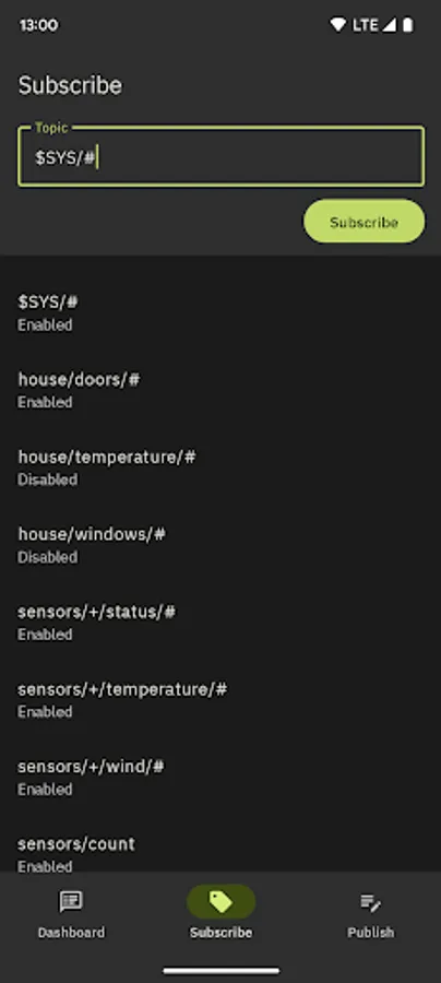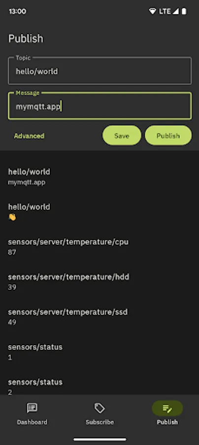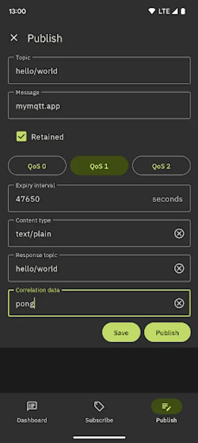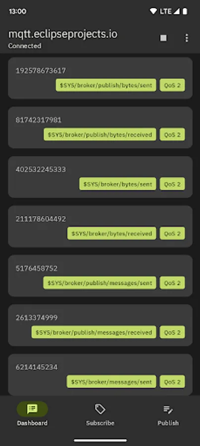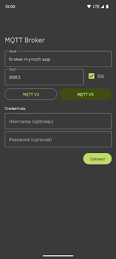 - Connect to MQTT v3.1.1 and v5.0 Broker (optional with username and password)