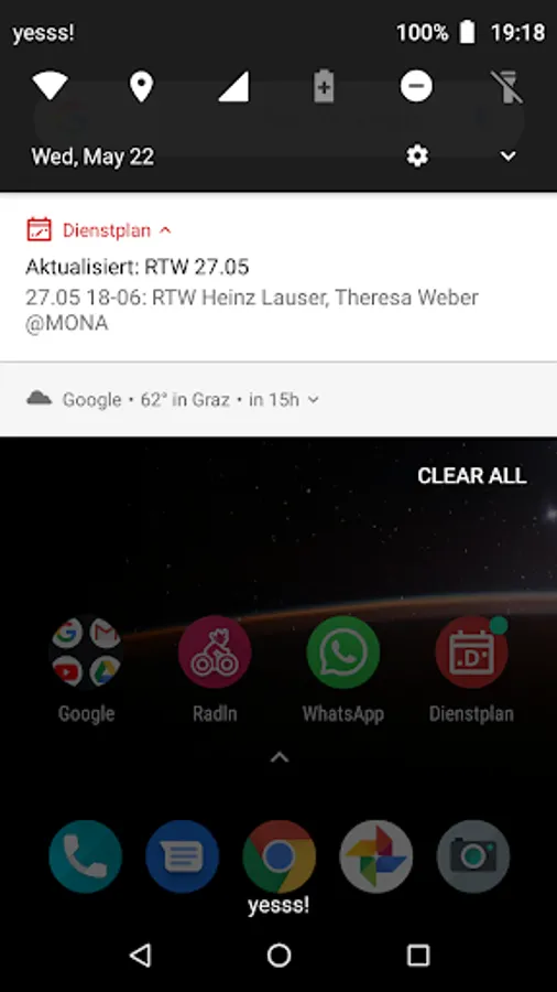 As member of the Styrian Red Cross (Rotes Kreuz Steiermark) you can access your schedule with this app and get notifications if your schedule changes.