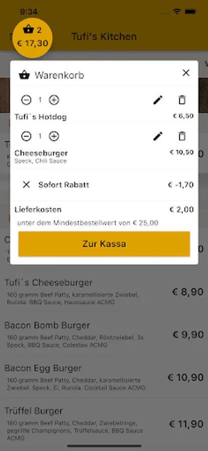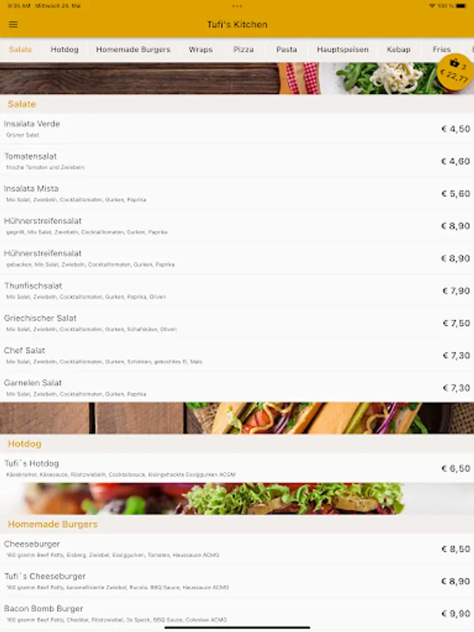 Tufi's Kitchen now also delivers to your home. Order burgers, hot dogs, pizza, pasta, salads, drinks and desserts conveniently and easily online. Now simply order food online via web or app. Choose your favorite food, pay easily & securely and the food will be delivered! Simply order food and have it delivered for free! Pay cash or online. Great offers. Excellent service. Fast delivery.