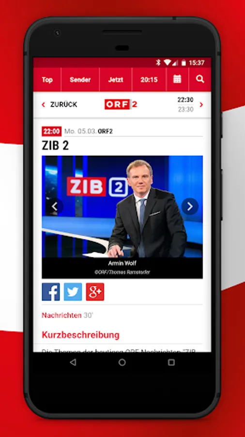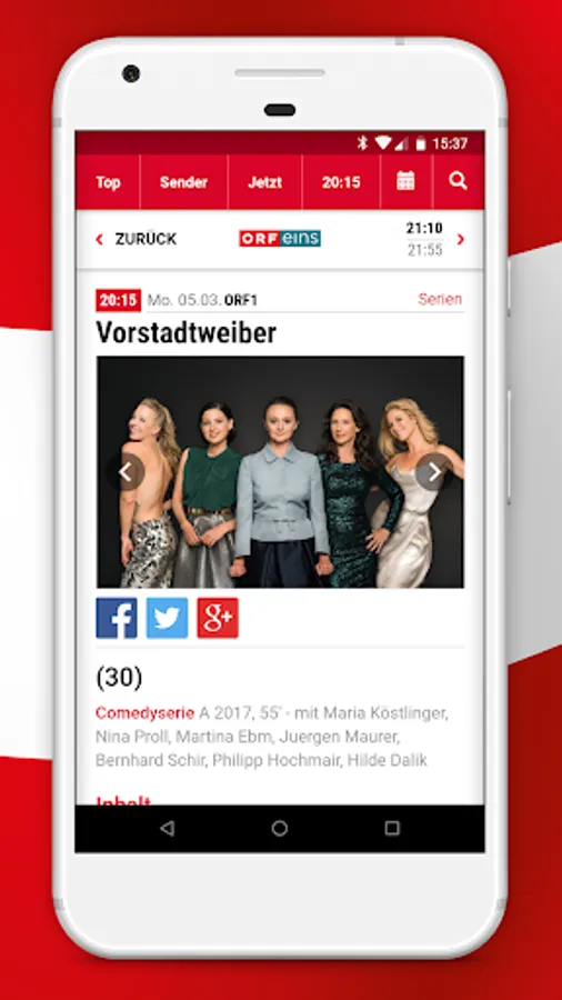 The best Austria TV program app. All broadcasts and daily highlights are tailored to the Austrian TV audience - from the "Vorstadtweibern" to the matches of the Austrian national football team.