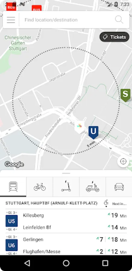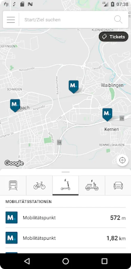 • Quick and easy public transport ticket booking: Buy your appropriate public transport ticket either directly via the "Tickets" button or via the route information. Short-distance tickets, single tickets and day tickets are available.