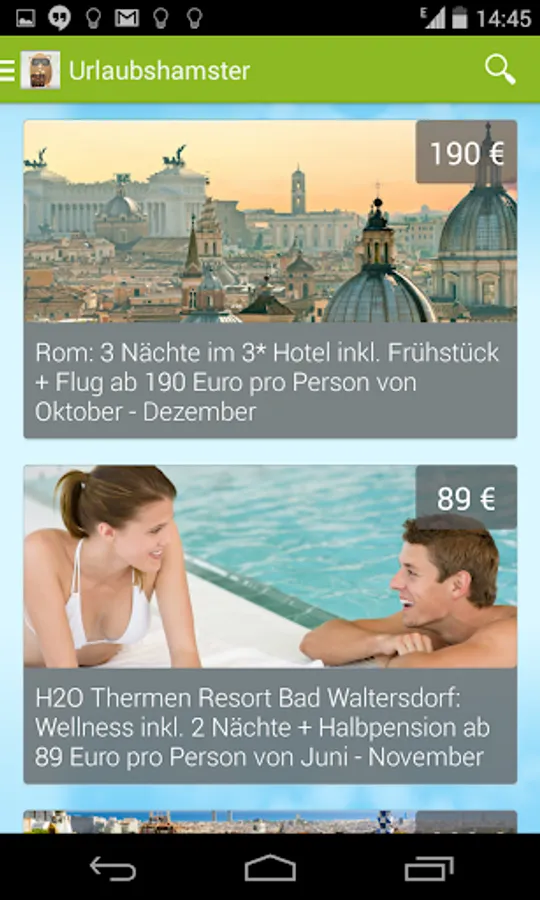 With the holiday hamster app you miss no more travel bargains. We provide you daily with the best offers from the areas