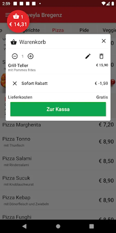Vaveyla Bregenz now also delivers to your home. Order Italian pizza, pasta, salads, drinks and desserts conveniently and easily online. Now simply order food online via the web or via the app. Choose your favorite food, pay easily & securely and food will be delivered! Simply order food and have it delivered for free! Pay in cash or online. Great offers. Excellent service. Fast delivery.