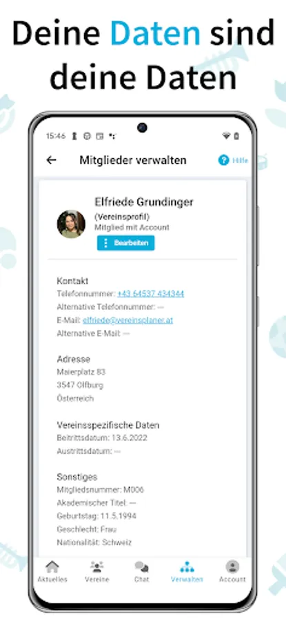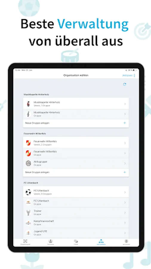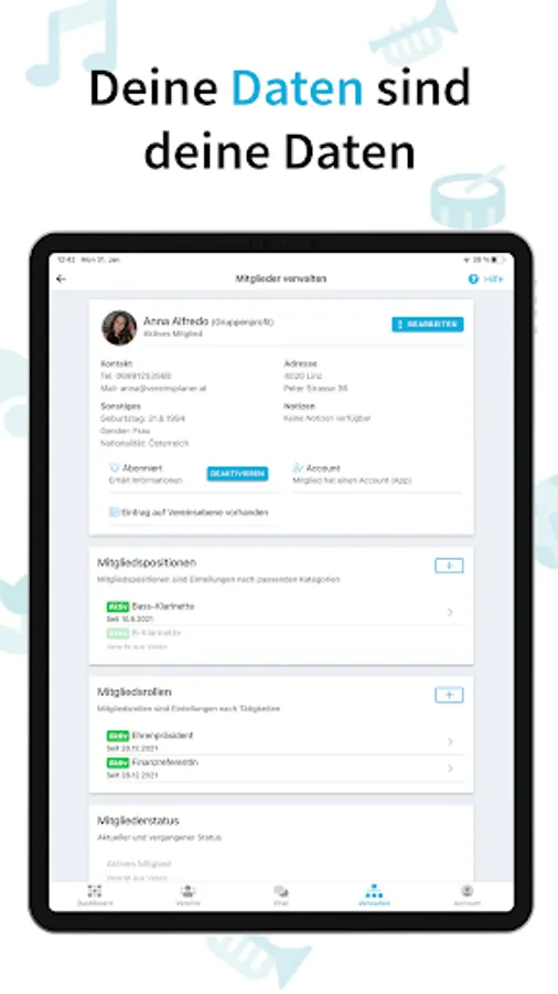 The app combines the administrative activities of the board with communication with the members in one tool. As a result, members are once again centrally involved in the activities of the association and can thus actively help to shape their association. Board members can digitally manage all areas of the association, from appointments to members to finances, thus saving enormous amounts of time while at the same time increasing data quality.