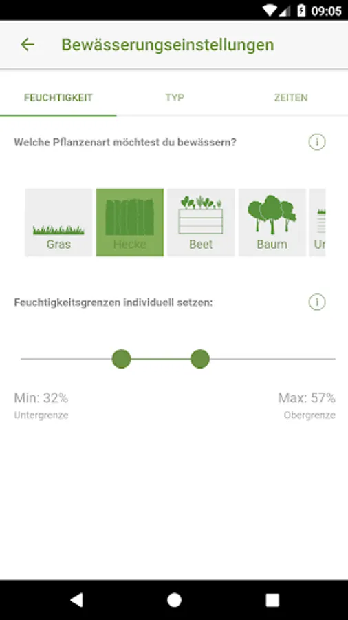 MIYO is not a simple timer. It fully satisfies the needs of your plants. You can easily set moisture borders with the app. Through our optional cloud system your garden is accessible worldwide, you have the choice if you use it or not.