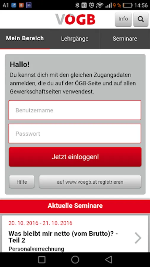 Union members can log in with your existing VÖGB credentials and receive exclusive additional functions such as