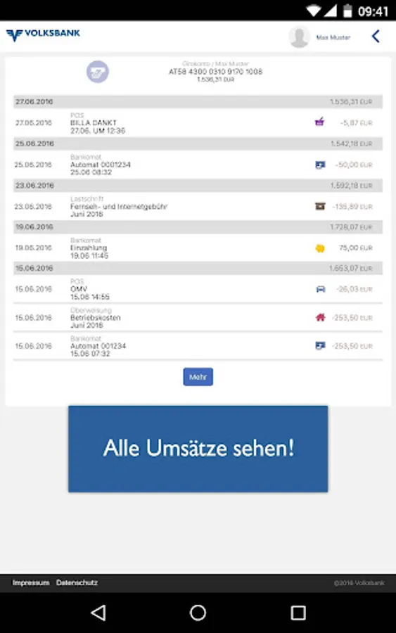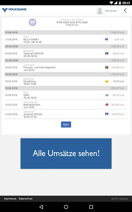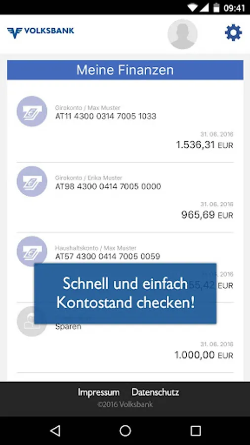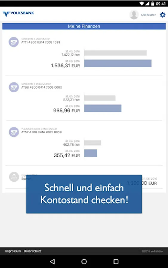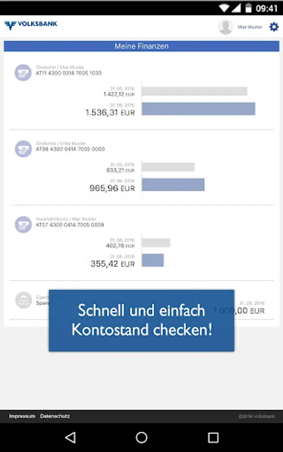 With Volksbank Quick App you gain in seconds an overview of your current balance and your revenues. The login is done comfortably by four-digit secret code (Quick ID).