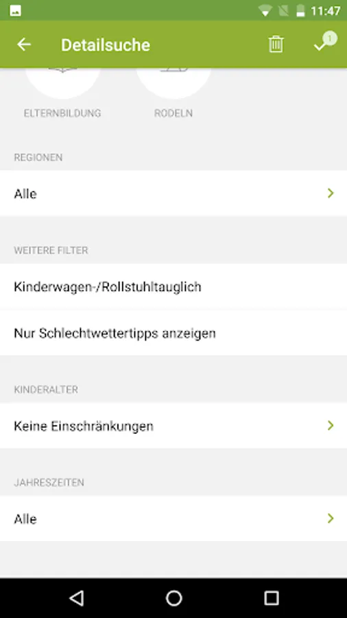 The family pass partner companies can easily filter and search, for example according to regions, categories, the age of the children, buggy fitness, bad weather tip, and much more.