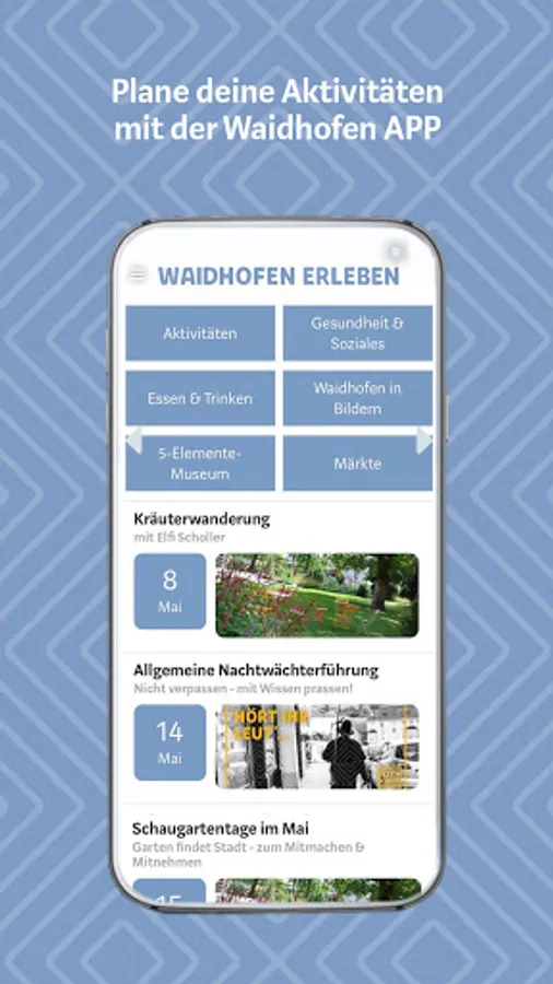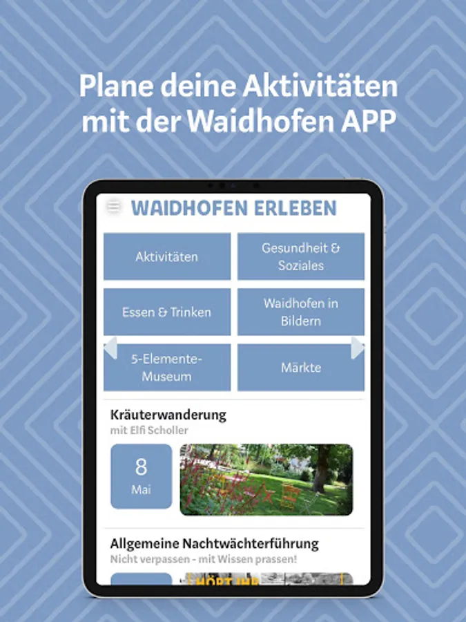 Are you a guest in our city? The city of Waidhofen app also has a lot of exciting information ready for tourists. You will find out everything about possible activities, Rothschild Castle, the Ybbstal Cycle Path, the Ybbstal Nature Park and the various shopping opportunities in the historic city center.