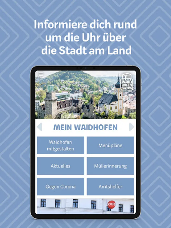 The app of the city of Waidhofen offers current information from the city administration, on tourism topics and on the shopping city. Useful functions such as online forms, miller reminders or the daily menu plans in gastronomy make everyday life easier. You can also easily get in touch with the city administration and share your ideas or concerns with the app!