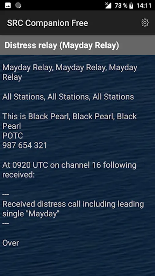 This app shows the radio messages required in the SRC (Short Range Certificate) according to WRC-07 in GMDSS: