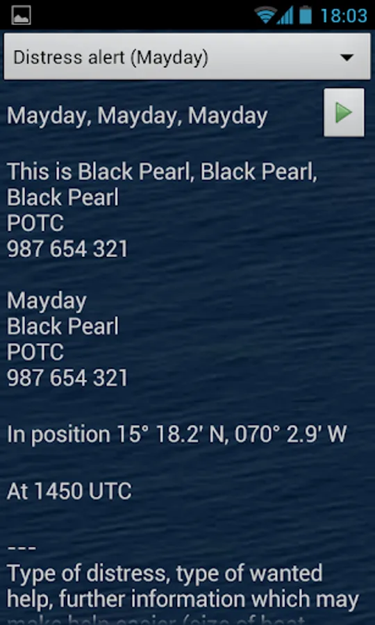 This app shows the radio messages required in the SRC (Short Range Certificate) according to WRC-07 in GMDSS:
