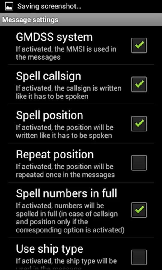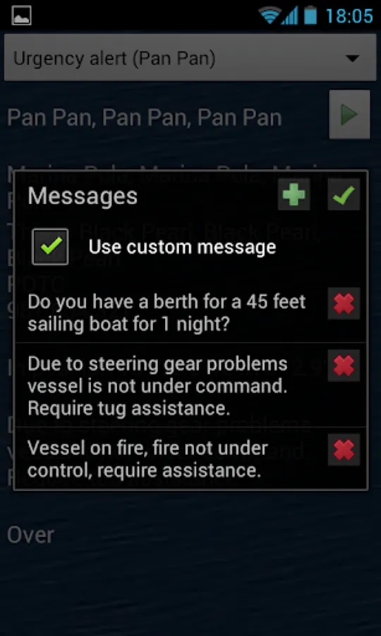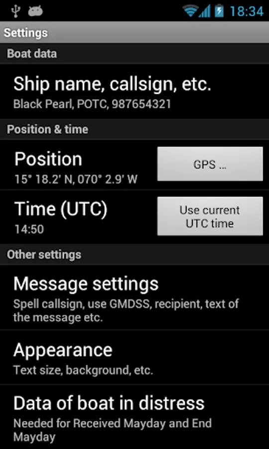 To achieve individual and customized messages following items can be changed: Ship name, callsign, MMSI, position, time, boat data of ship in distress, recipient and content of the message (if allowed by the standard), name of the skipper.