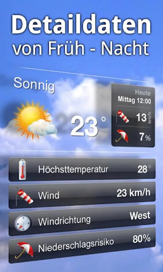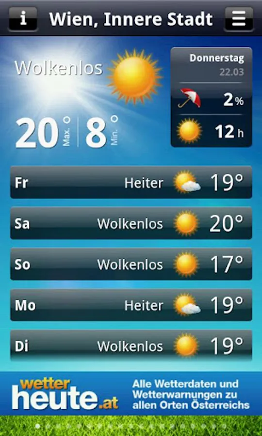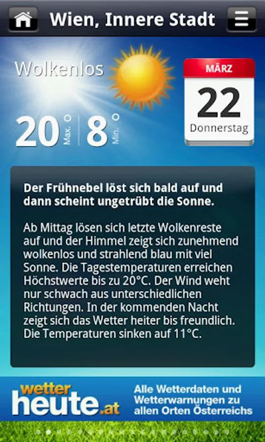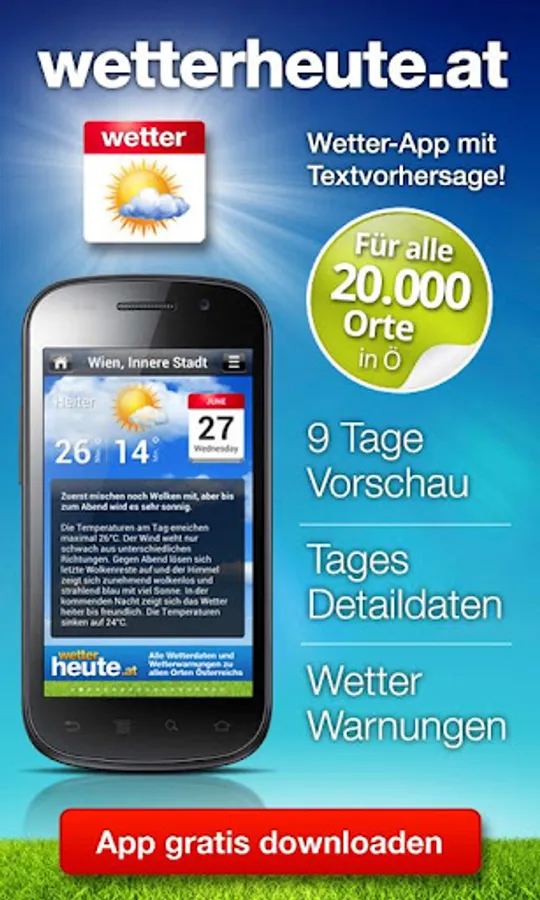wetterheute.at is a free app, is available for free download and is supported by all mobile operators A1, T-Mobile and Orange.