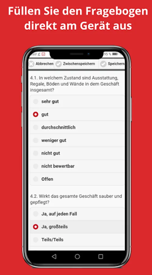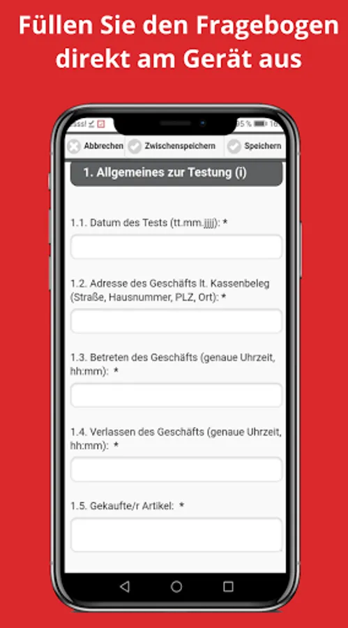 • Push messages: always well informed about the orders currently available. As soon as we can offer you a suitable order, you will immediately receive a message. Are you traveling? No problem. With our app, you can immediately accept or reject the mystery shopping order on the go with just a few clicks and thus secure the order - possibly faster than other test buyers. You can also answer surveys immediately.