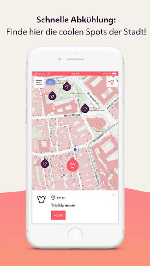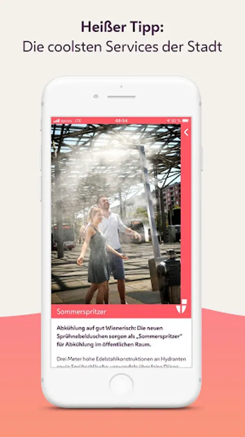 Rising temperatures have a negative impact not only on the microclimate, but also on health, particularly in densely built-up urban areas. The "Cool Vienna" app makes it quick and easy to find places in the middle of the heated urban jungle that provide cooling and refreshment. On a digital map you can see drinking fountains, spray showers ("summer splashes"), baths, natural bathing areas, water playgrounds and many other "cooling points" in the immediate vicinity. Interesting information on the subject of Viennese water and other cool measures (e.g. promoting facade greening) are also available and are updated on an ongoing basis.