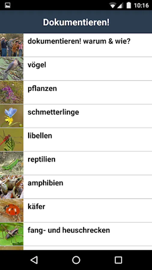 "Naturbeobachten in Vienna" is a tool for you as observer of nature, with which you can enter directly professionally in the field of your observations, in order to subsequently transferred to naturgucker.at. This method saves you over the classic note-taking and subsequent data capture on PC considerable time.
