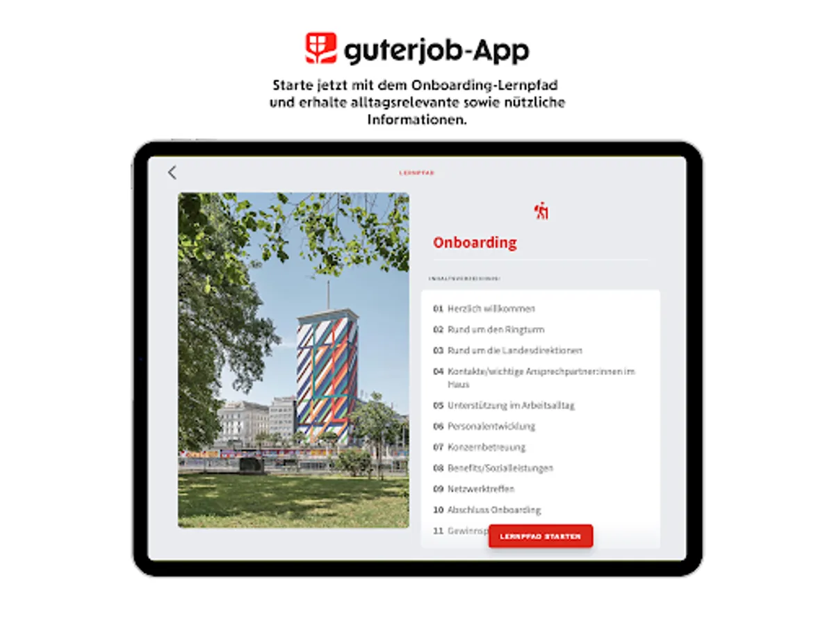 Our welcome app is exclusively for new employees and gives them valuable insights into the company and important information to make starting a job easier.