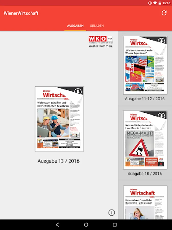 Business news from Vienna, Austria and the world to a lot of service information and business advice for entrepreneurs - all for free on your Android device. This is the WIENER ECONOMY - the weekly newspaper of the Vienna Economic Chamber.