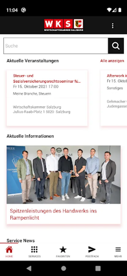 All current WKS events as well as the most important service news from the WKS news portal can also be found prominently.