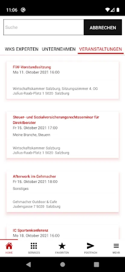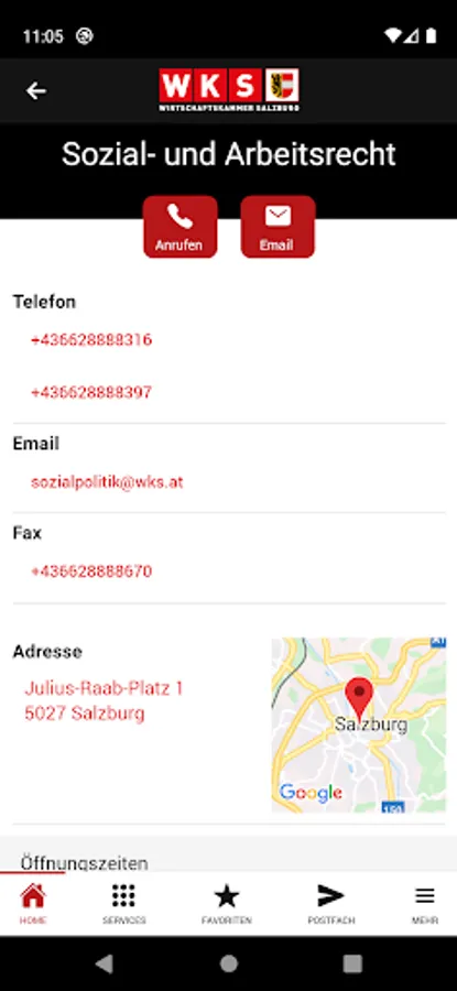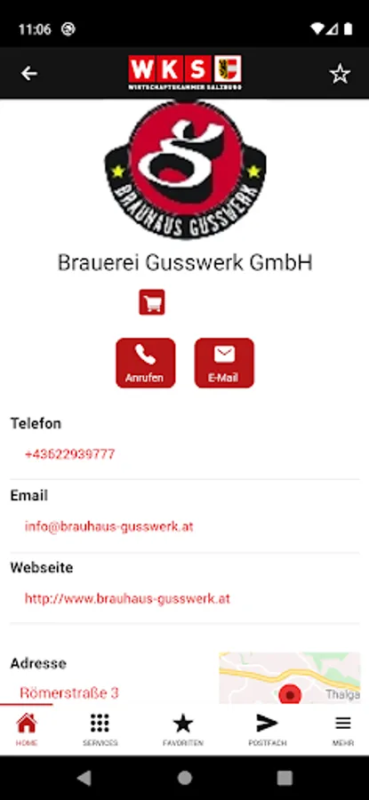 The search for Salzburg companies or the respective industry works in a similar way. If you enter “carpenter” and “Hallein”, the app shows the carpentry businesses in the city of Hallein. The search can be refined with additional filter functions. The data entered by the companies in company A-Z can then be used immediately.