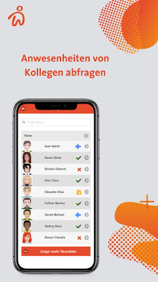 - Access to the current status of colleagues (present, absent, ...)