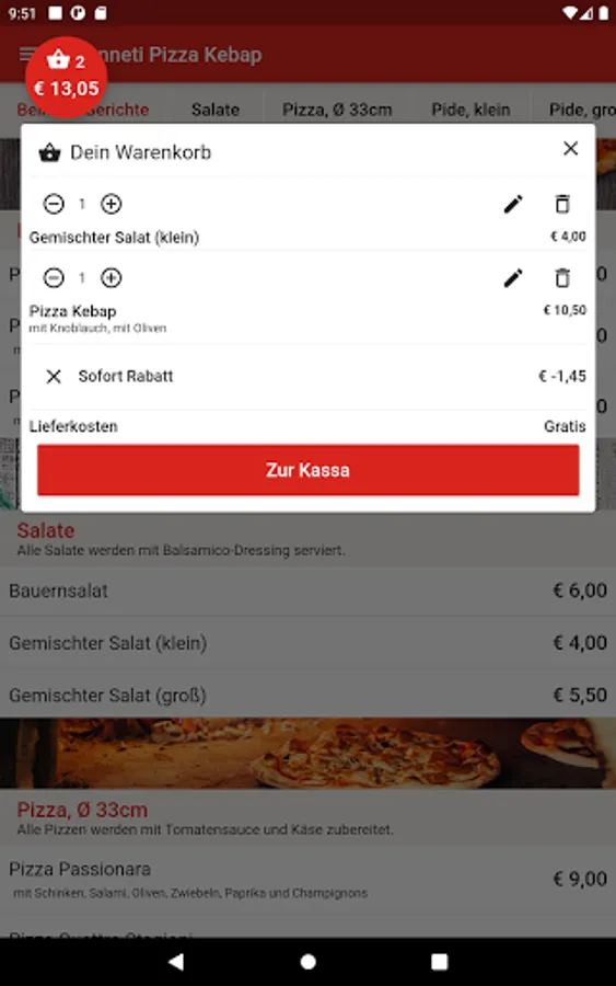 Zanetti Pizza now also delivers to your home. Order Italian pizza, pide, kebab, salads, drinks and desserts conveniently and easily online. Now simply order food online via the web or via the app. Choose your favorite food, pay easily & securely and food will be delivered! Simply order food and have it delivered for free! Pay in cash or online. Great offers. Excellent service. Fast delivery.