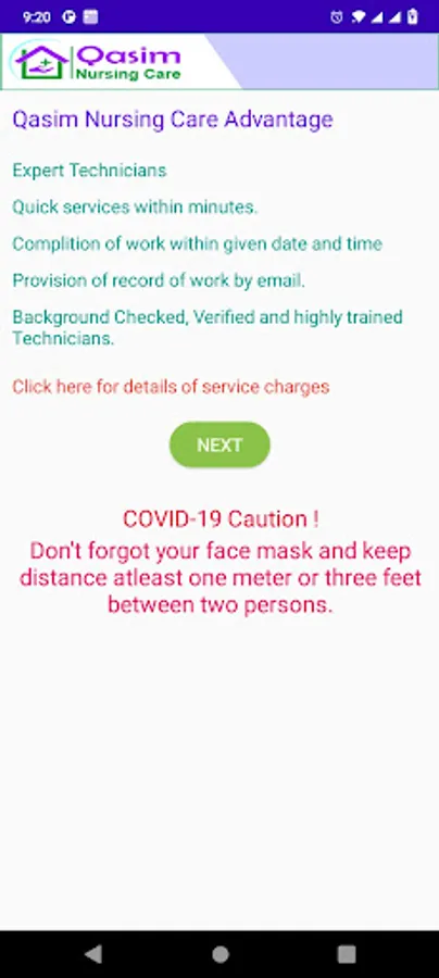 Qasim Nursing Care app provides nursing services at the door step of the user and on the other hand provides work opportunity to medical technicians that they go to patients home and provide nursing service like, Injection administration, Drip administration , I.V Cannulation and dressing etc. By using this app customers can contact by call with admin to get later medical technician services. In this app for quick services to find technicians and patients location google maps API are used. Patients will be login after mobile no. verification and technicians will be logged in through registered email.