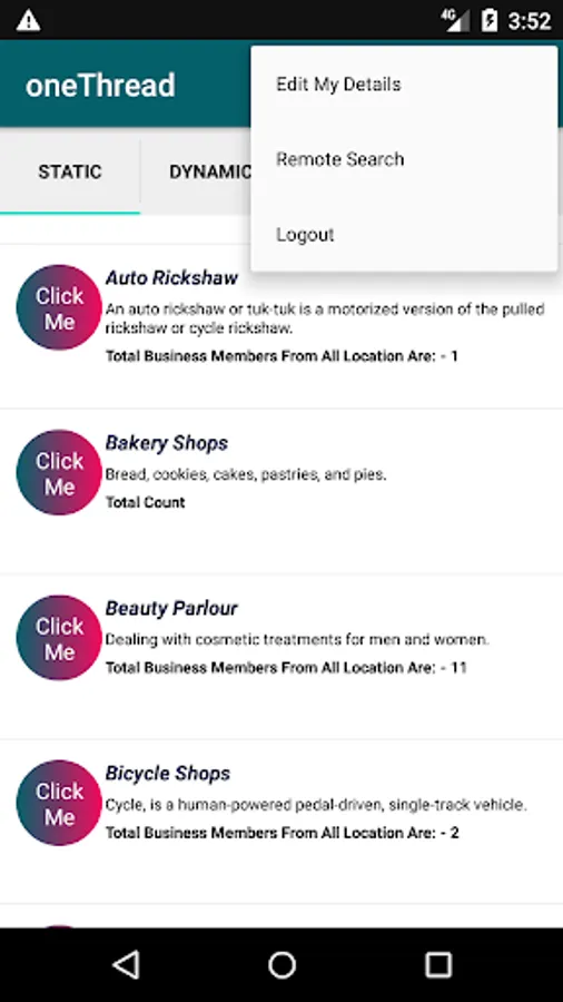 Real scenario: If you are travelling to different or new location for purchasing property or for rented accommodation. You would required help and support from local property masters but you are not aware of address of any real estate agent. Again, open ONETHREAD App, Inside REAL ESTATE section of Dynamic list will list out all registered real estate agent name and address according to your current location. It will save your considerable amount of time and same can be searched from your own location using REMOTE SEARCH...