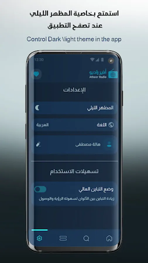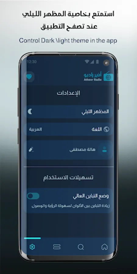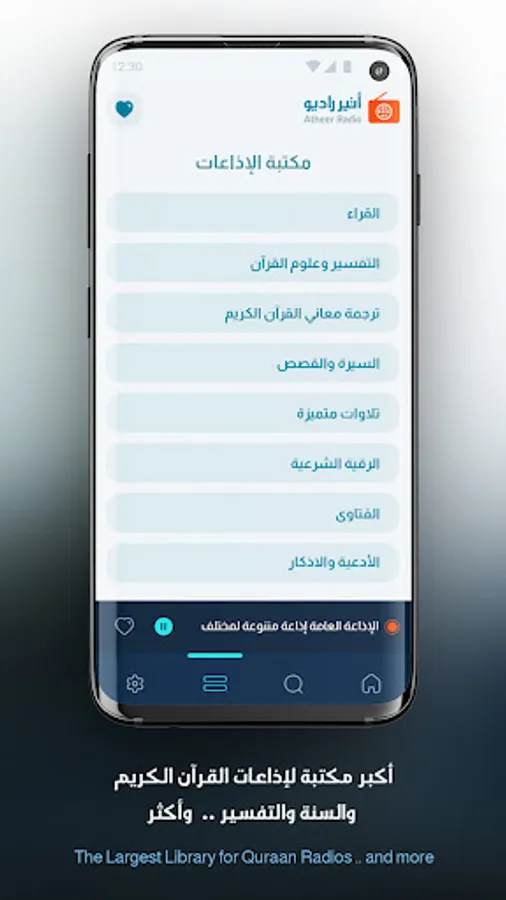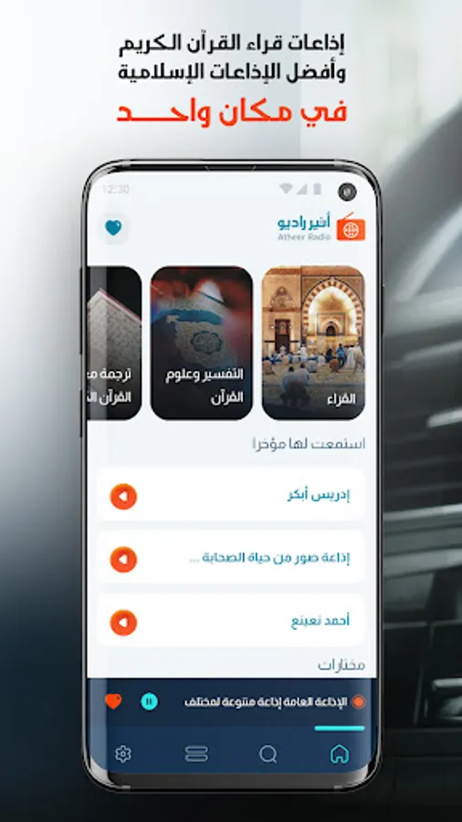 Atheer Radio An application that features more than 130 Islamic radio stations in various categories