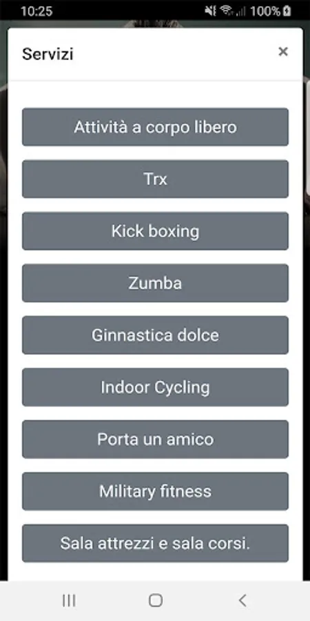 Cardio-fitness, bodybuilding, wellness and weight-loss exercises are carried out. We offer indoor courses of ciclying, gag, zumba, pilates and military fitness cross.