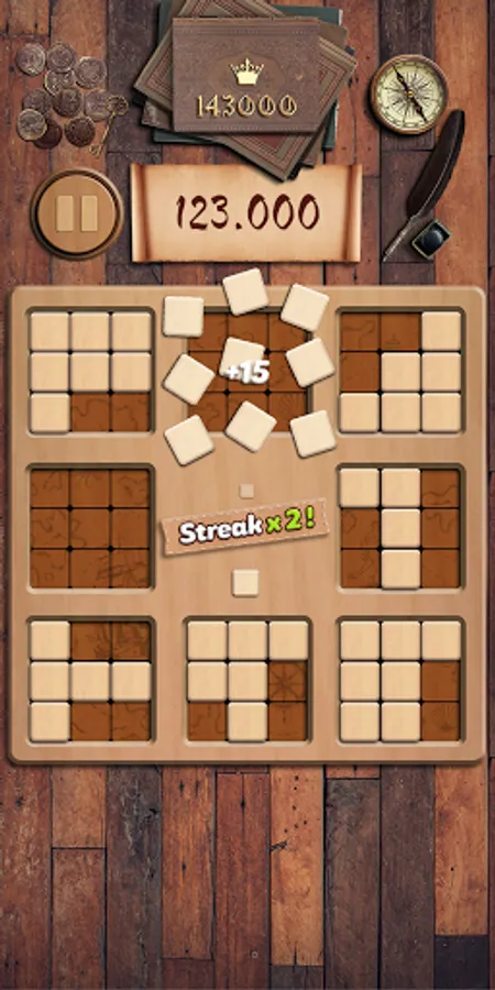 This 8x8 square puzzle has you simply drag the given blocks to fill up and clear the 8 outer squares to get a high score! Once you complete a square, you will be rewarded with a single block to help you easily get the streak scores.