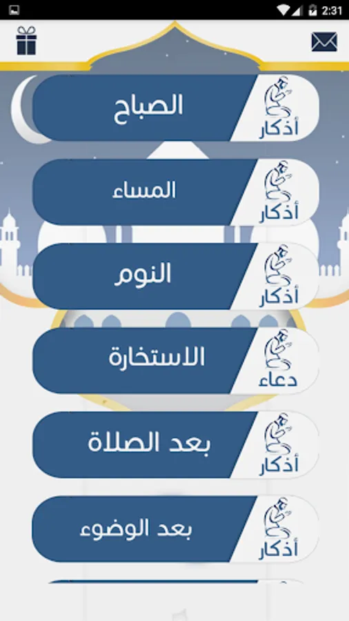 The Azkar program includes many dhikr and supplications contained in the book Hisn Al-Muslim that are indispensable in our daily life and in our dealings with people, in an easy and simple way.