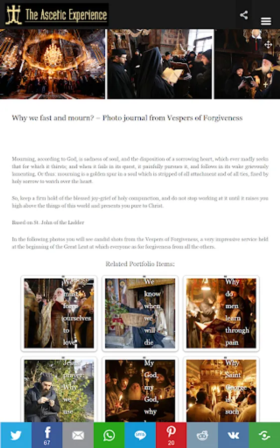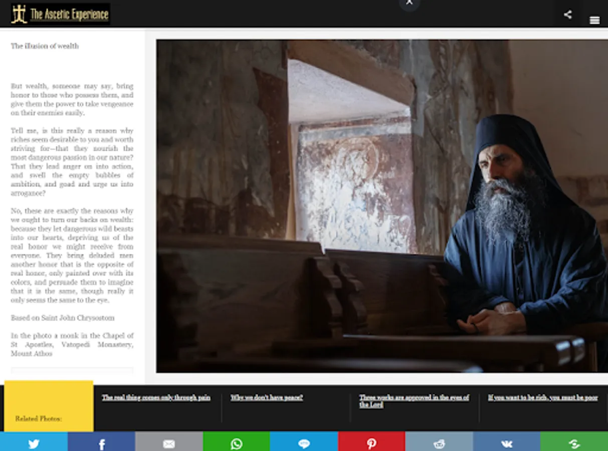 The best daily short spiritual orthodox articles which you can read in under two minutes. Accompanied with stunning and modern photos from Mount Athos, the daily updated app gives in the easiest way possible a quick spiritually healing text from the Holy Fathers adapted to our day by day needs.
