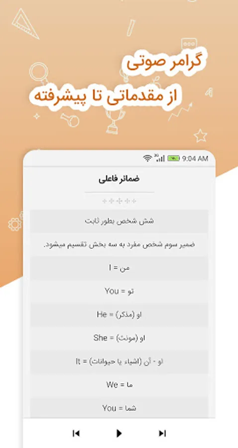 • Hundreds of minutes of audio grammar in simple language by Persian speakers from basic to advanced