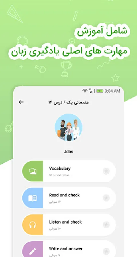 • Each atlas lesson includes various sections in which you learn new words and besides that, by using specialized and attractive exercises, you can strengthen different language skills and learn a whole lot of new things.