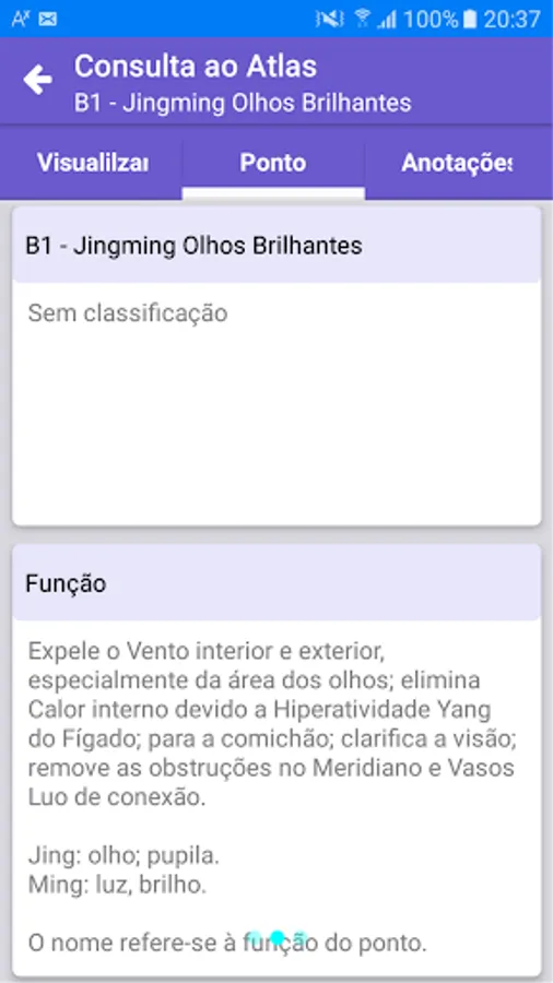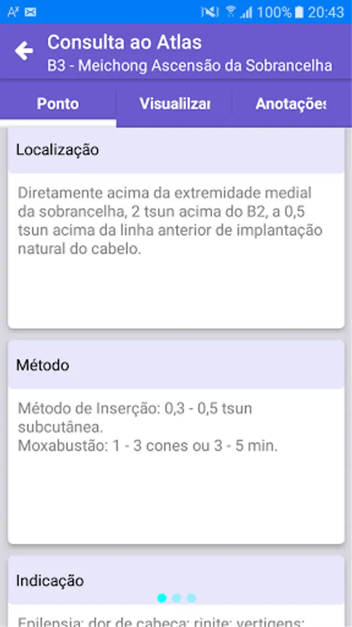 It allows to consult the function, method location and indication of more than 300 points. It is an application developed to assist in the choice of acupuncture points.