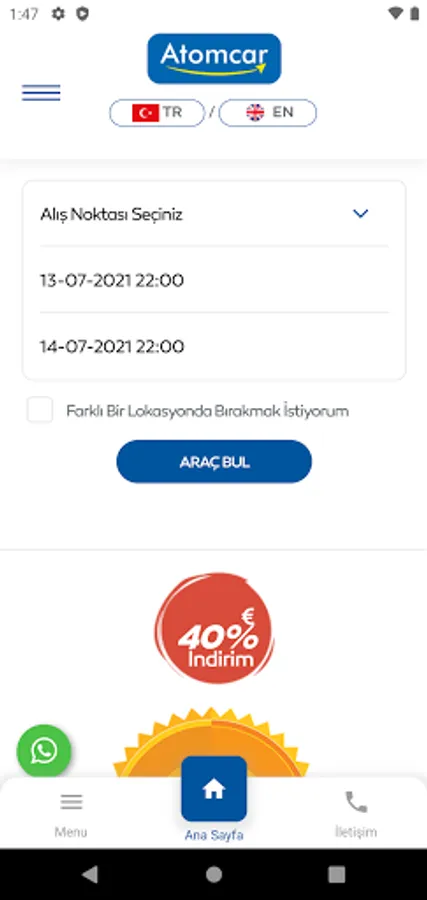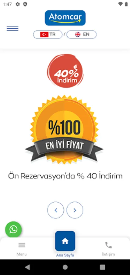 Atom rent a car is now even closer to you. You can quickly make reservations through our application, track your past reservations, and easily reach our call center.
