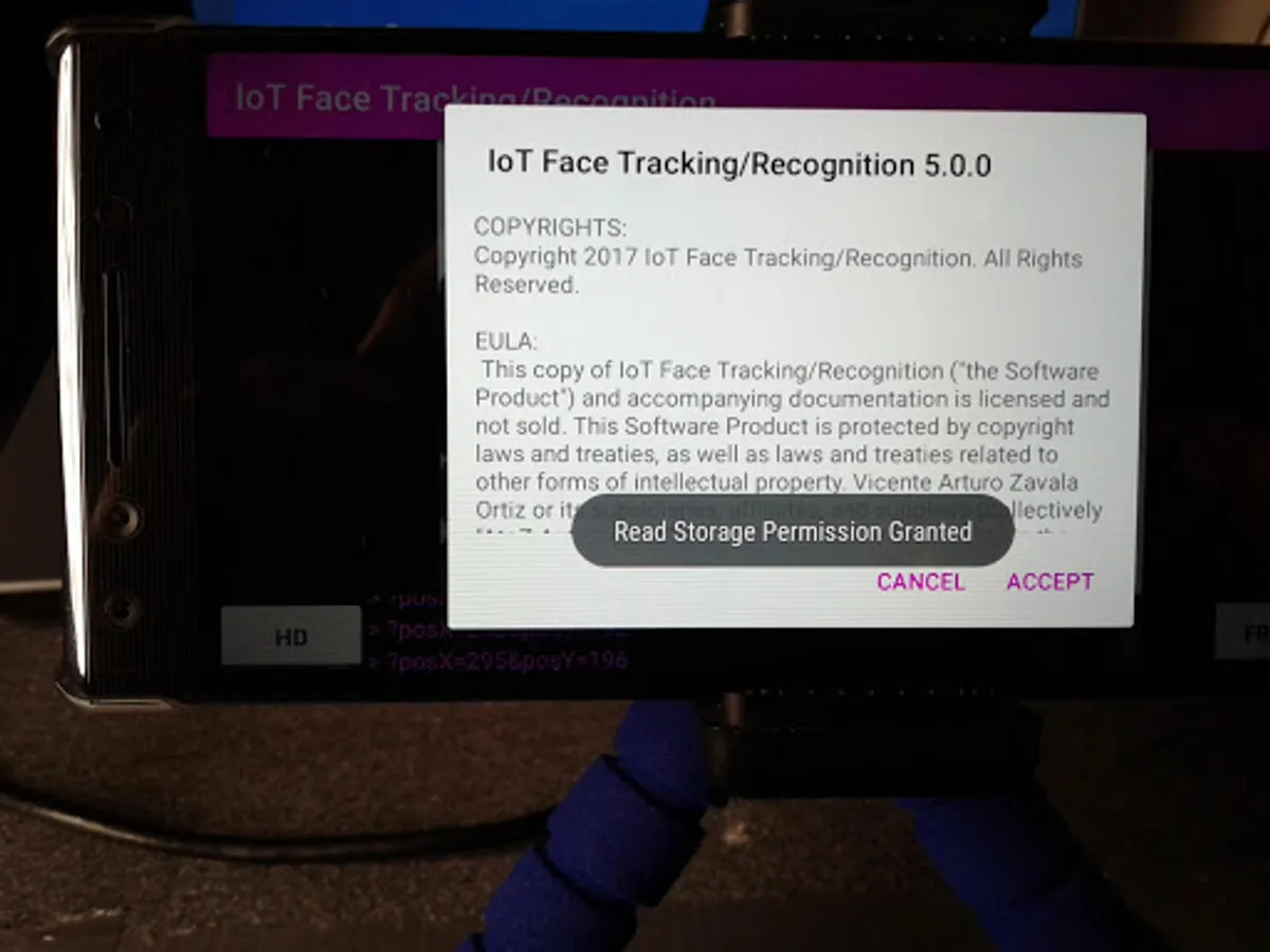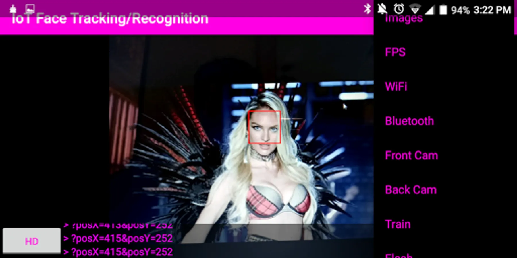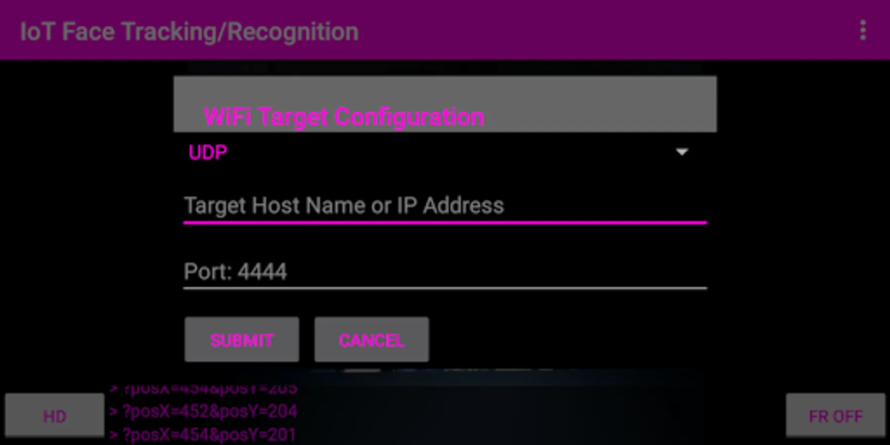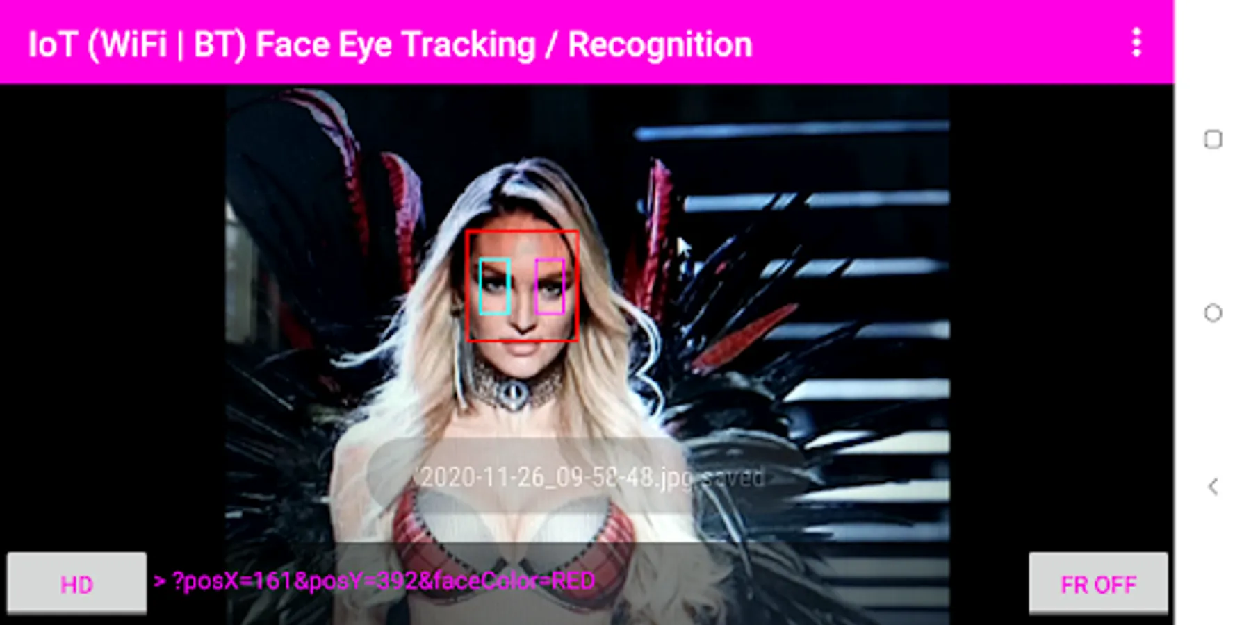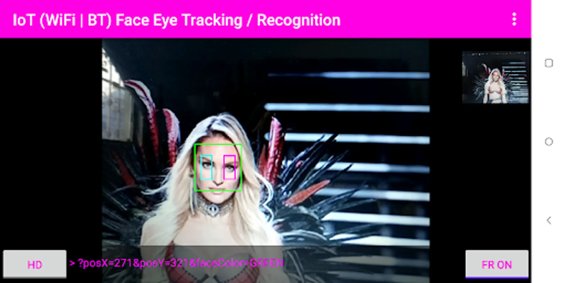 WiFi module receives information about the object through a WiFi module, in this case the ESP32 , ESP8266 and Breakout Board CC3000 from TI. The communication is done through UDP or TCP sockets client server "NOW COMMUNICATION CAN BE ACHIEVED THROUGH BLUETOOTH" the application in the mobile sends the necessary data (frame size, position and "face color" for horizontal and vertical servo) to the microcontroller so that this can perform the calculations with the information sent and perform the updates in the servos, in this case only the horizontal.