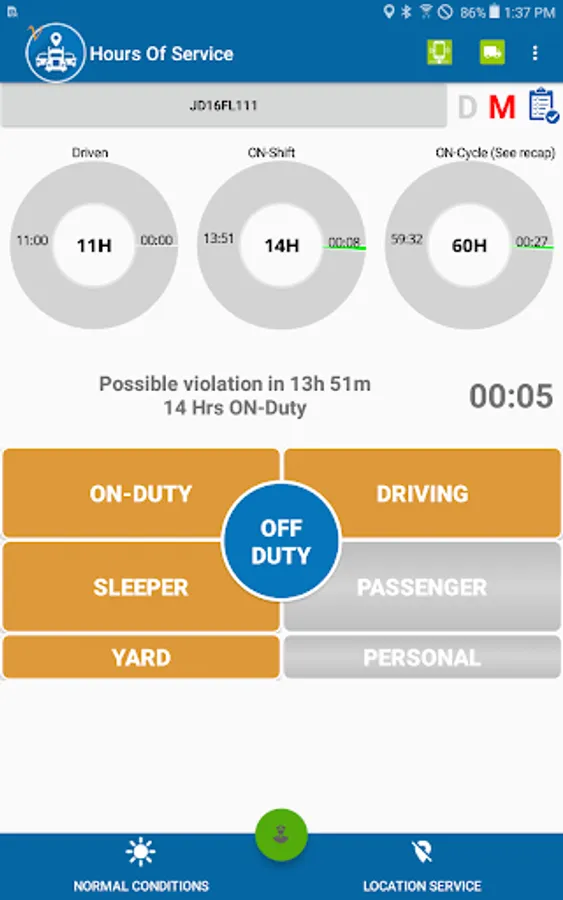 Compliant app to record driver duty status and meet the following regulations:
