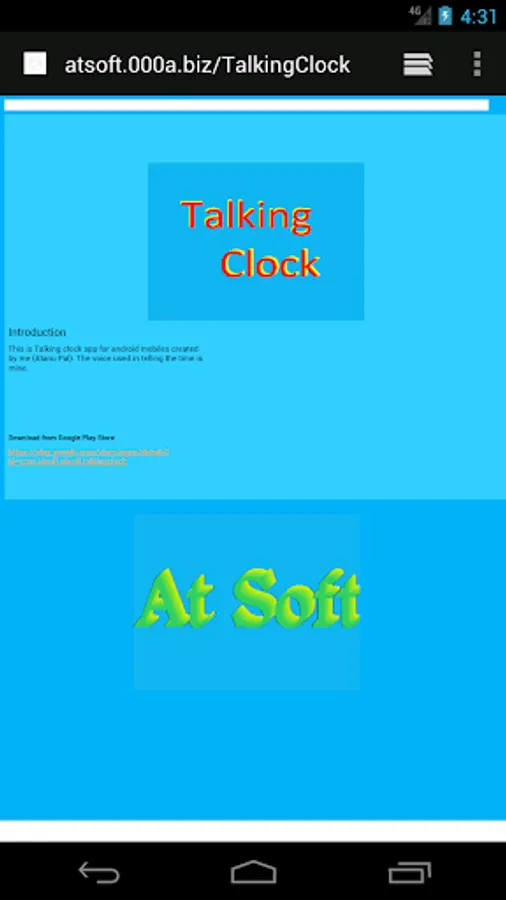 Talking Clock - This is Talking clock app for android mobiles created by me (Atanu Pal). The voice used in telling the time is mine.