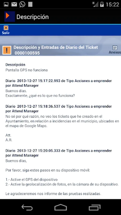 With this application you can record your incidents using a ticket form from your smartphone and you will have the opportunity to attach a geolocalized photo with your exact coordinates