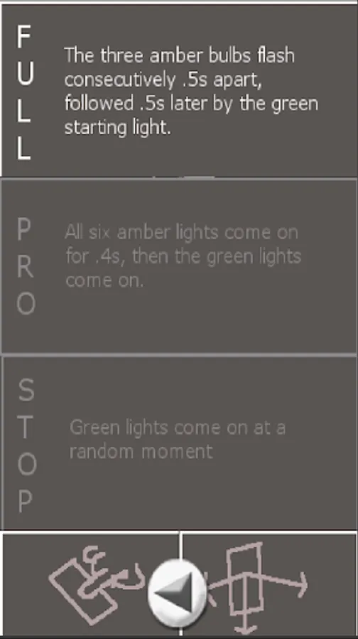 - Pro tree - all ambers light up at the same time, followed by the green light after 0.4 seconds