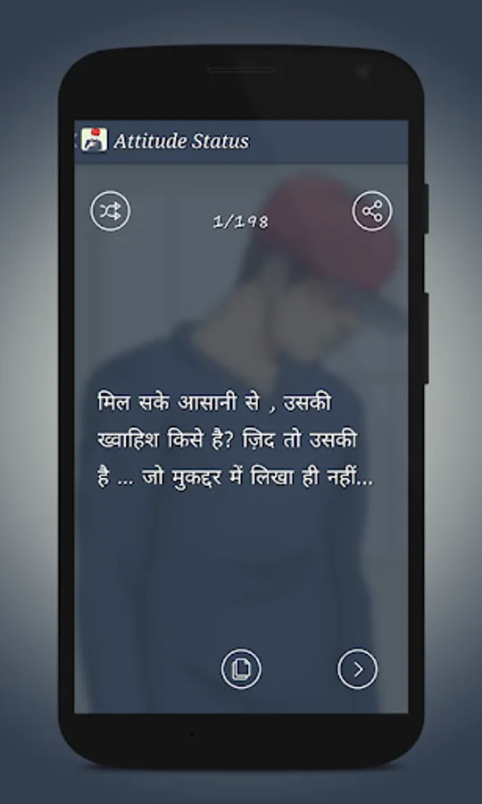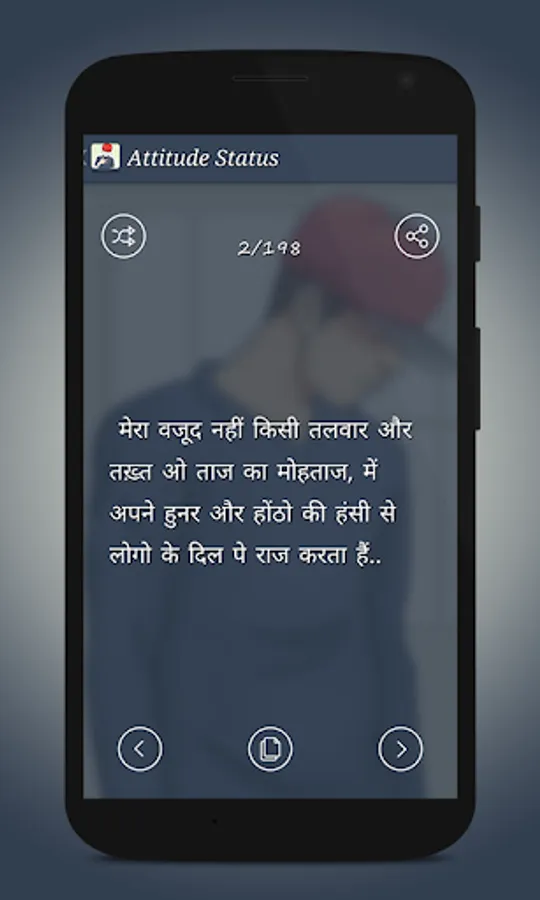 Attitude Status 2020 is app with fresh collection of status . it has 3 category English Status , Hindi Status and Hinglish Status and also you can share status with whats-app directly and you can send message directly to your loved one.