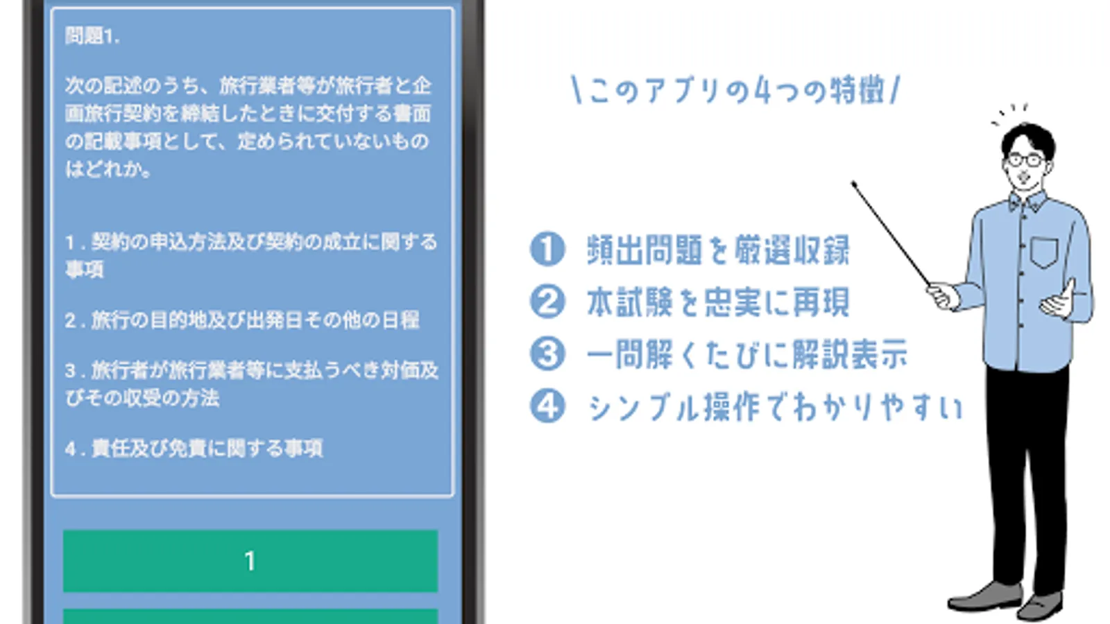 It is a problem collection app for domestic travel business handling manager exam.