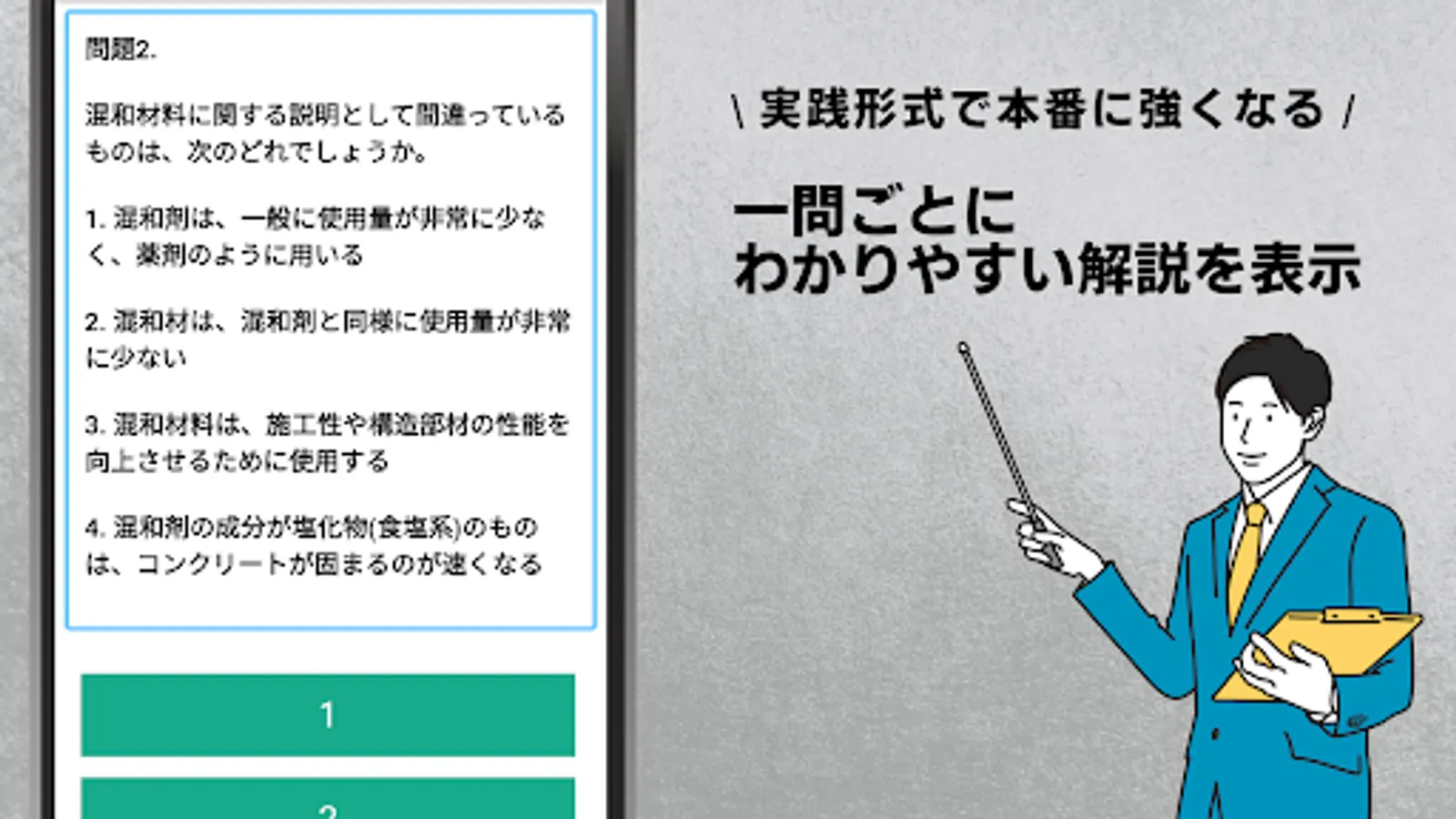 It is an application for exam preparation questions for concrete engineers and chief engineers.