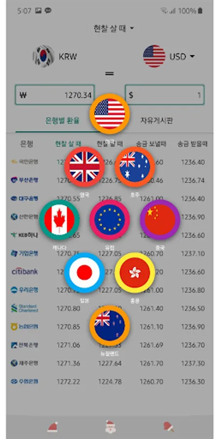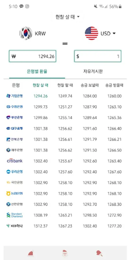 은행별 환율 (제 1금융 : 하나, 우리, 신환, 기업 Screenshots